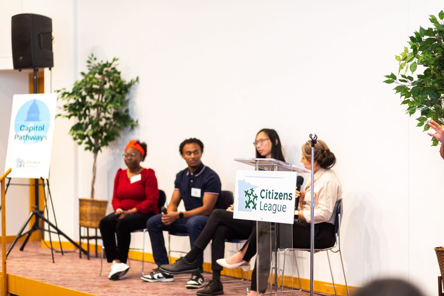 Our program centered the voices of Capitol Pathways students and alumni, welcoming Capitol Pathways alum speaker, Fatima Moore, and members of the 2023 Capitol Pathways cohort in a panel conversation with Jack Peng, Priscilla Mayowa, and Moses Yazachew.